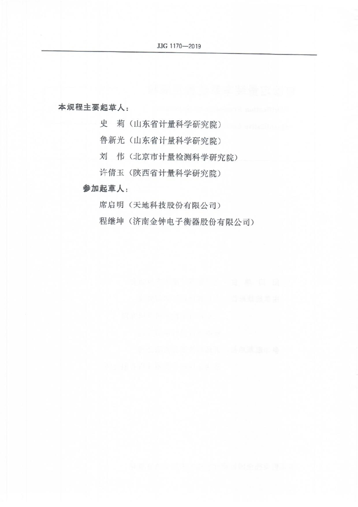 史莉(山东省计量科学研究院)、鲁新光(山东省计量科学研究院)、刘伟(北京市计量检测科学研究院)、许倩玉(陕西省计量科学研究院)、席启明(天地科技股份有限公司)、程继坤(济南金钟电子衡器股份有限公司)