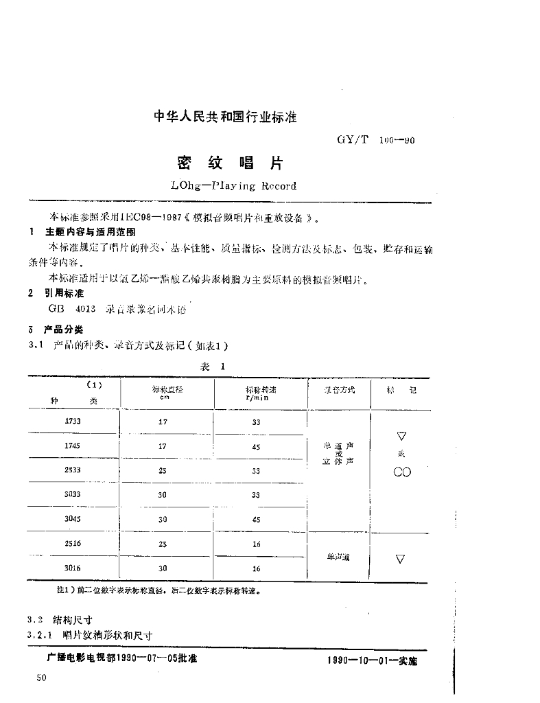 GY/T 100-1990 密纹唱片