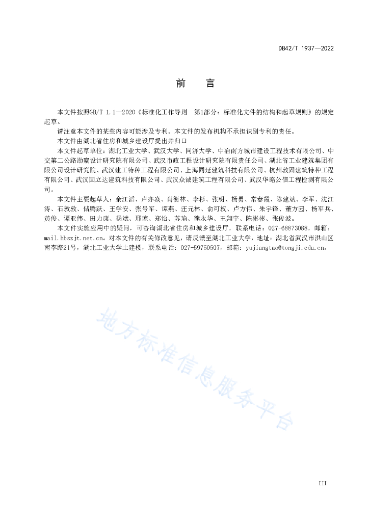 湖北工业大学、武汉大学、同济大学、中治南方城市建设工程技术有限公司、中交第二公路勘察设计研究院有限公司、武汉市政工程设计研究院有限责任公司、湖北省工业建筑集团有限公司设计研究院、武汉建工特种工程有限公司、上海同延建筑科技有限公司、杭州敦固建筑特种工程有限公司、武汉固立达建筑科技有限公司、武汉众诚建筑工程有限公司、武汉华略公信工程检测有限公司