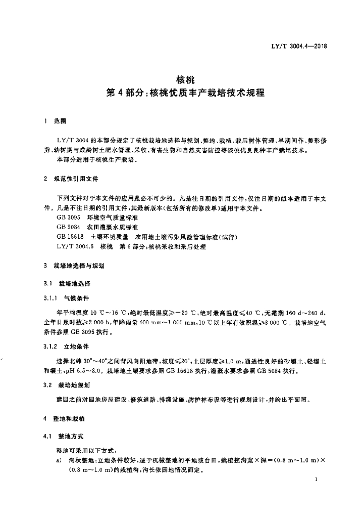 LY/T 3004.4-2018 核桃 第4部分:核桃优质丰产栽培技术规程