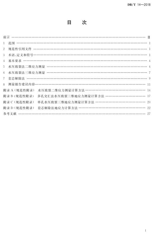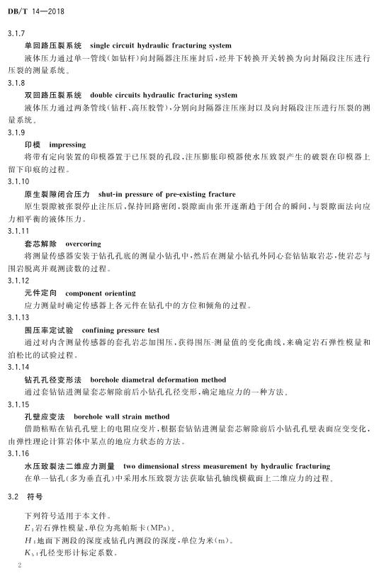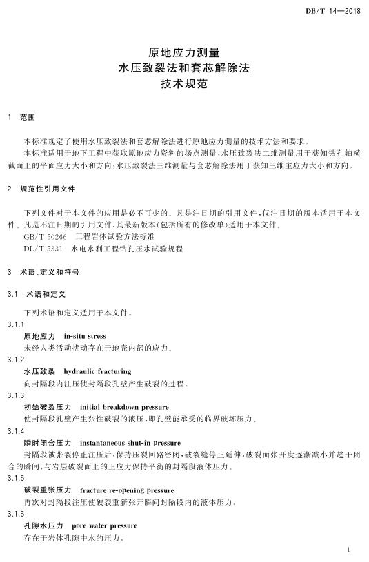 DB/T 14-2018 原地应力测量水压致裂法和套芯解除法技术规范