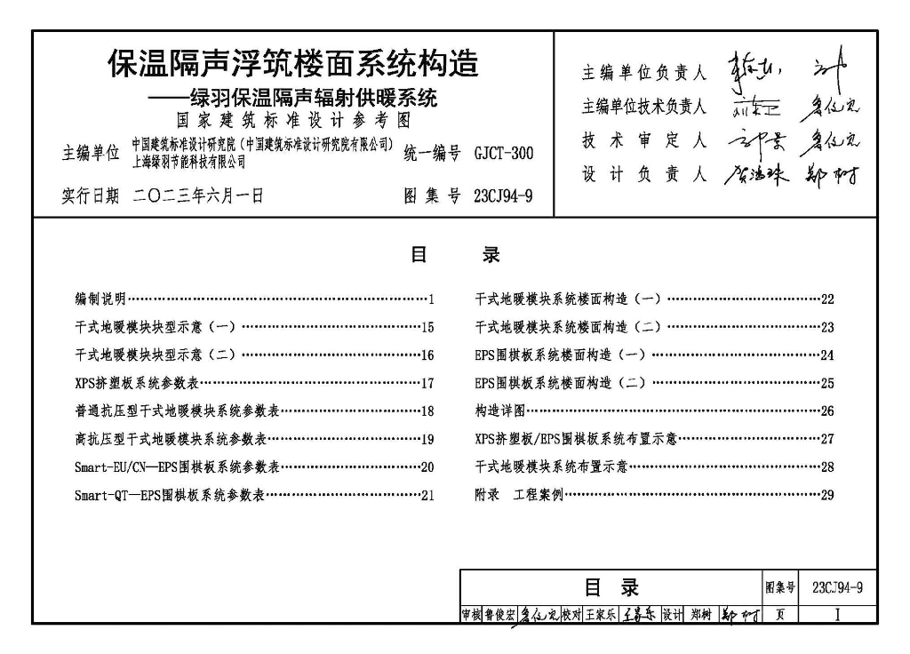 23CJ94-9 保温隔声浮筑楼面系统构造——绿羽保温隔声辐射供暖系统参考图集