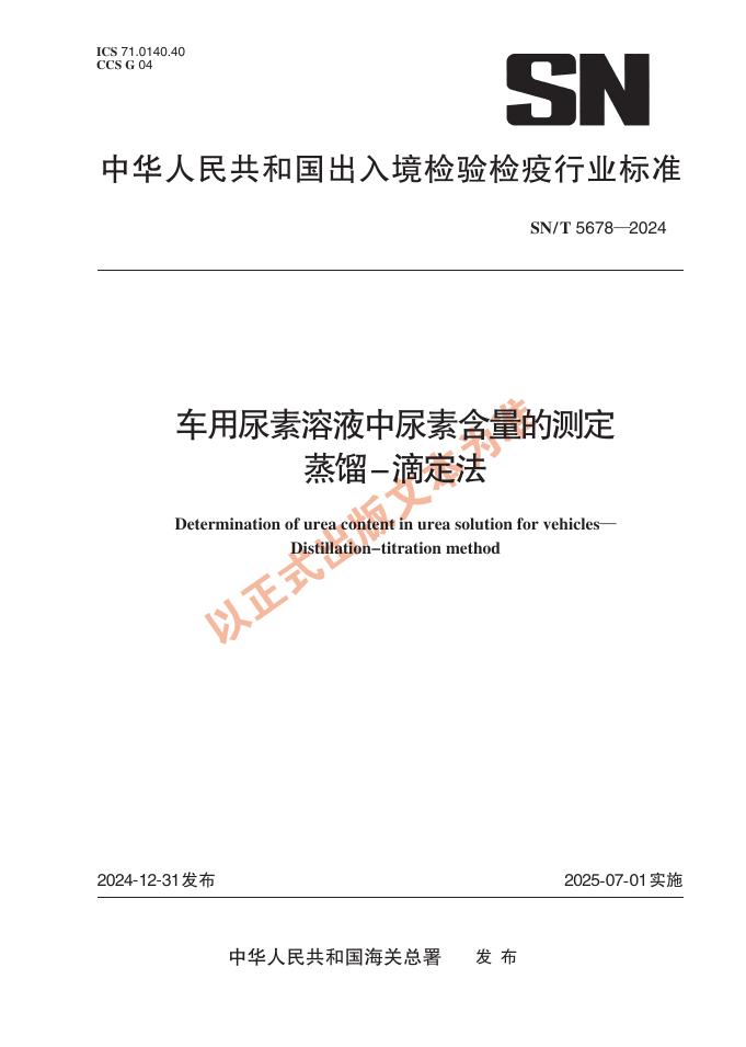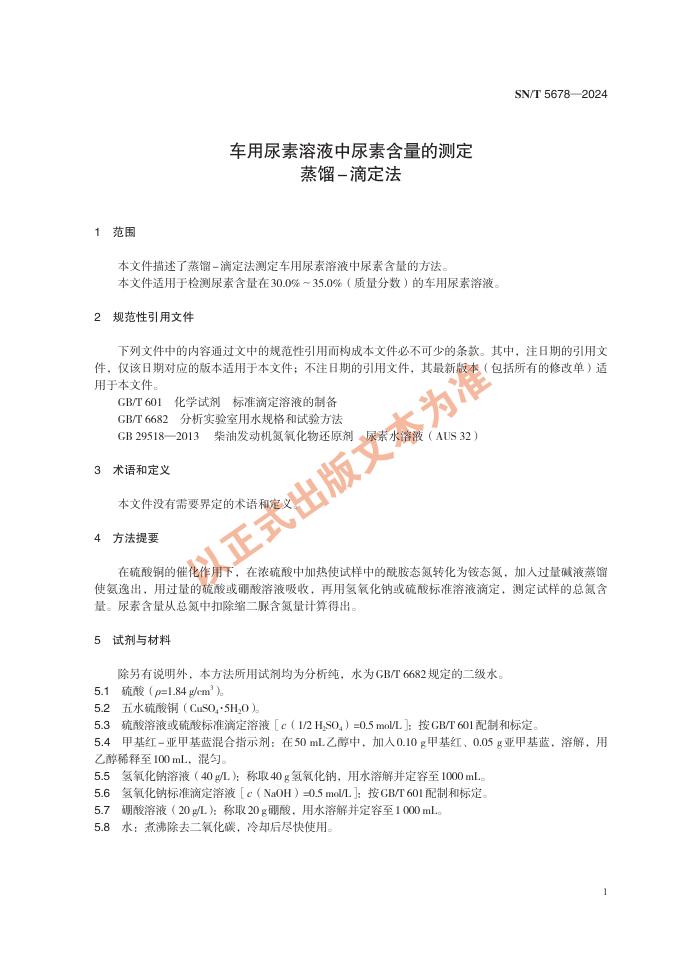 SN/T 5678-2024 车用尿素溶液中尿素含量的测定 蒸馏-滴定法