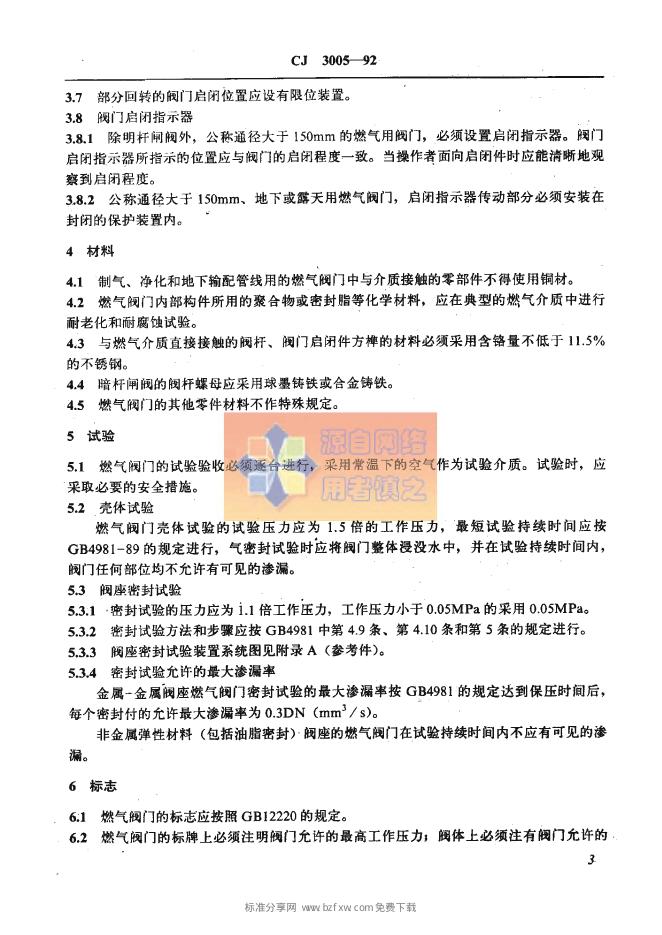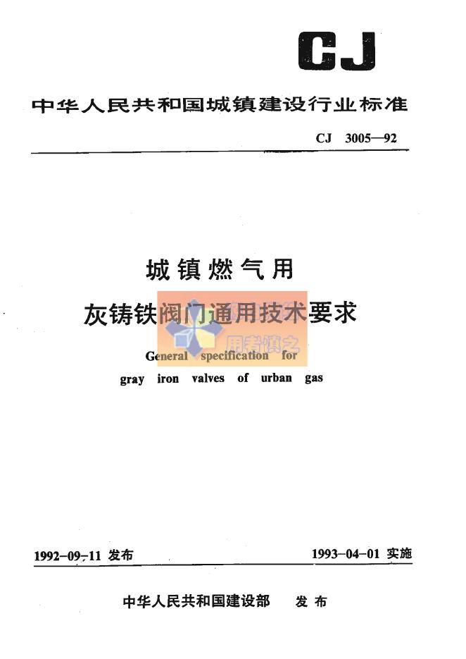 CJ 3005-1992 城镇燃气用 灰铸铁阀门通用技术要求