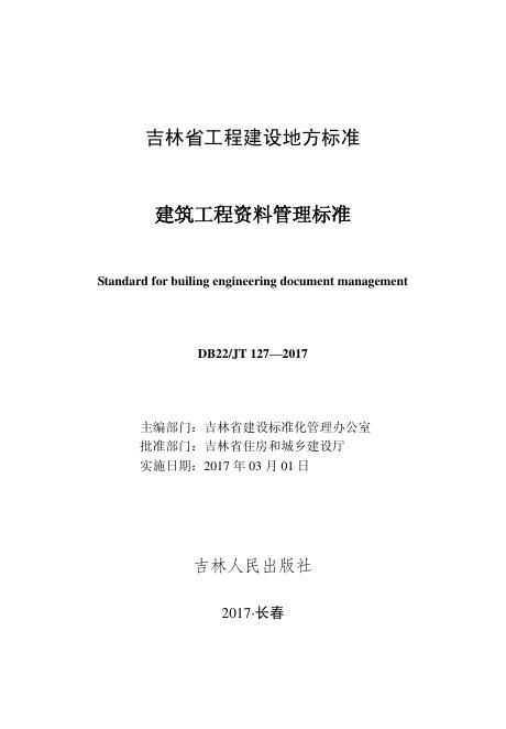 DB22/JT 127-2017 建筑工程资料管理标准(已废止)