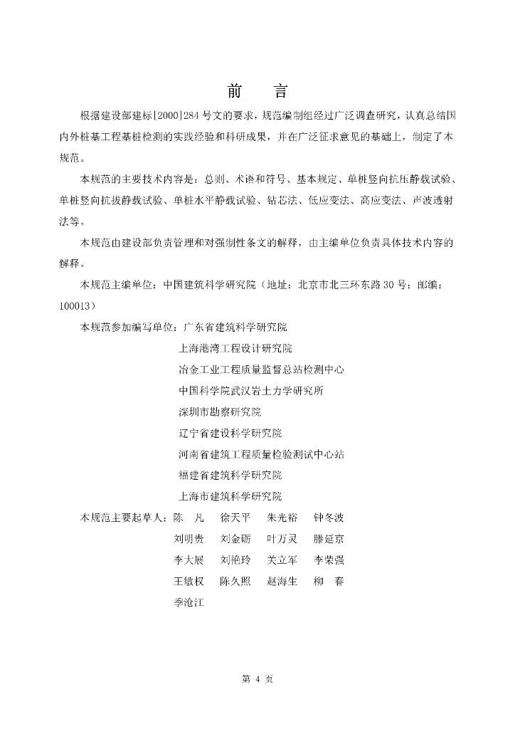 中国建筑科学研究院、广东省建筑科学研究院、上海港湾工程设计研究院、冶金工业工程质量监督总站检测中心、中国科学院武汉岩土力学研究所、深圳市勘察研究院、辽宁省建设科学研究院、河南省建筑工程质量检验测试中心站、福建省建筑科学研究院、上海市建筑科学研究院