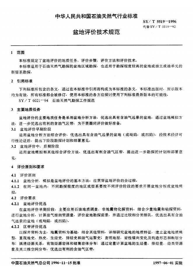SY/T 5519-1992 盆地评价技术规范