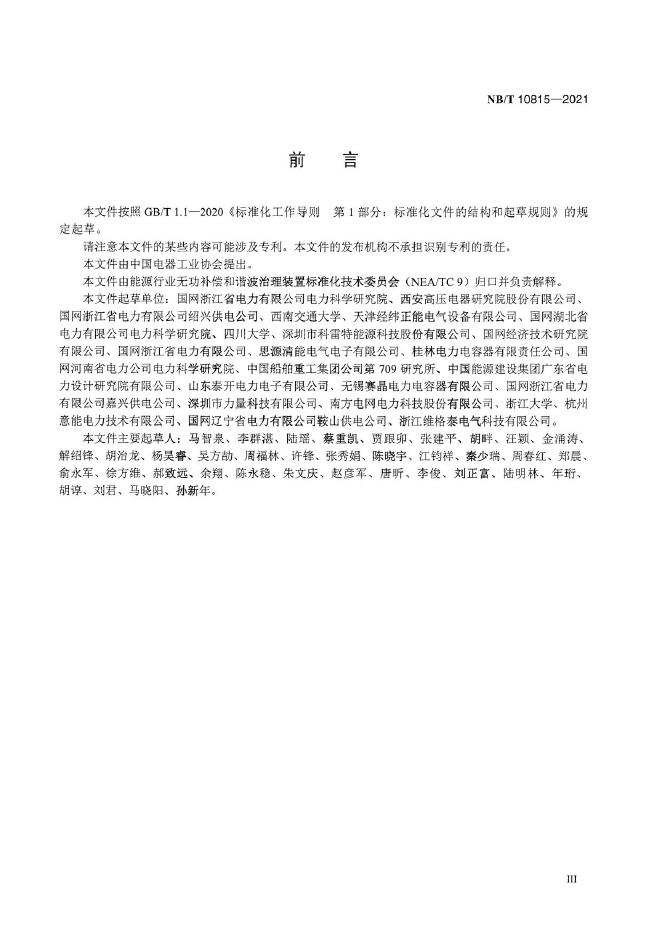 国网浙江省电力有限公司电力科学研究院、西安高压电器研究院股份有限公司、国网浙江省电力有限公司绍兴供电公司、西南交通大学、天津经纬正能电气设备有限公司、国网湖北省电力有限公司电力科学研究院、四川大学、深圳市科雷特能源科技股份有限公司、国网经济技术研究院有限公司、国网浙江省电力有限公司、思源清能电气电子有限公司、桂林电力电容器有限责任公司、国网河南省电力公司电力科学研究院、中国船舶重工集团公司第709研究所、中国能源建设集团广东省电力设计研究院有限公司、山东泰开电力电子有限公司、无锡赛晶电力电容器有限公司、国
