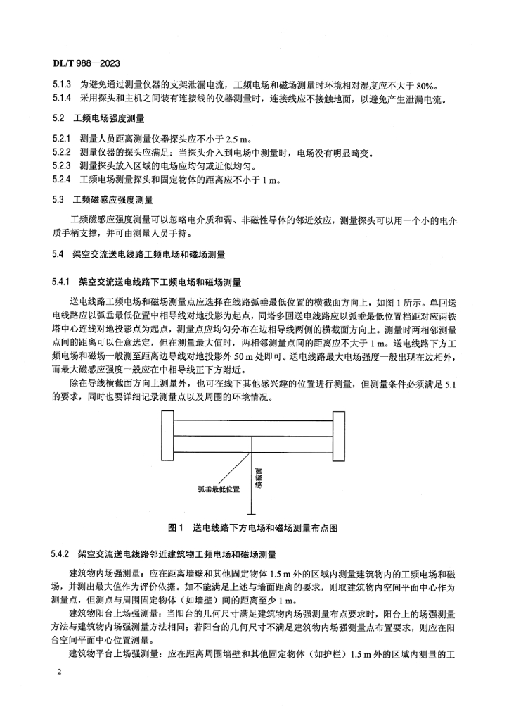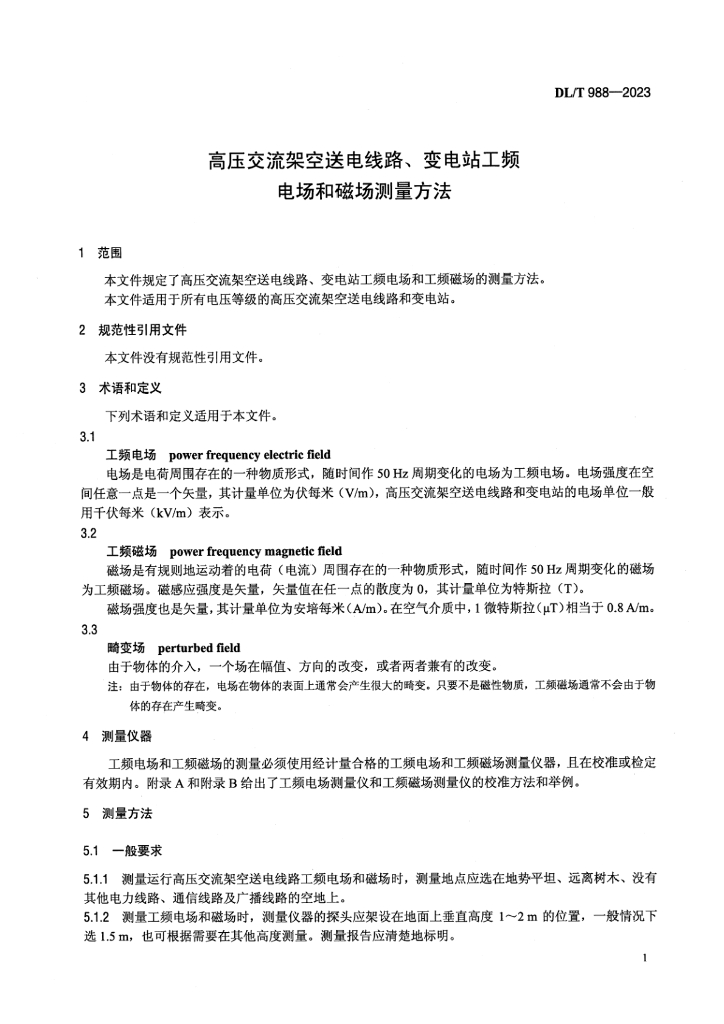DL/T 988-2023 高压交流架空送电线路、变电站工频电场和磁场测量方法