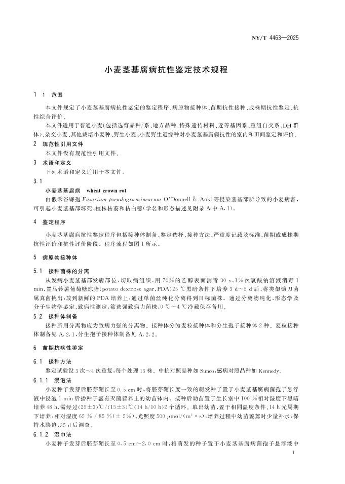 NY/T 4463-2025 小麦茎基腐病抗性鉴定技术规程
