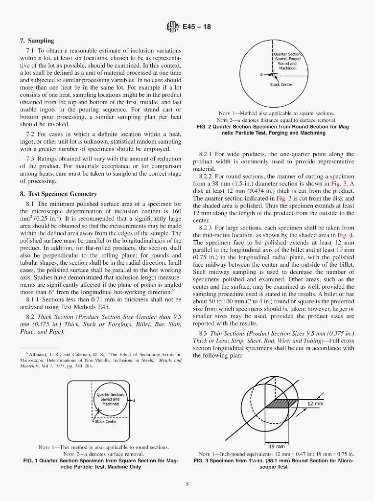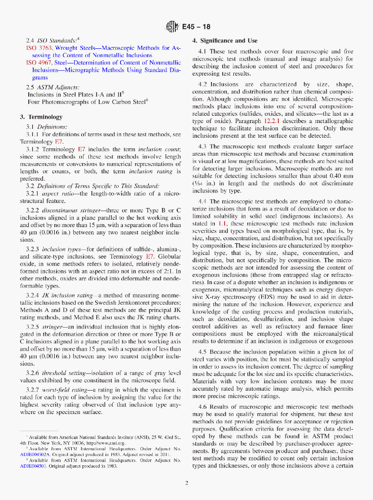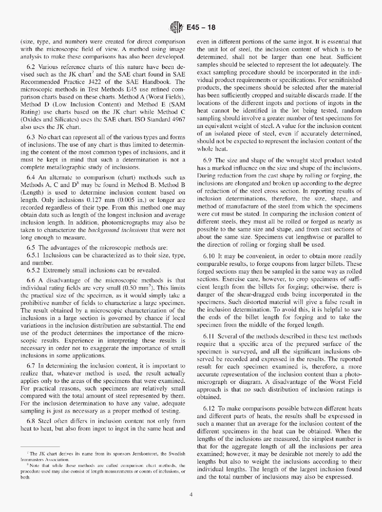 ASTM E45-18 Standard Test Methods for Determining the Inclusion Content of Steel