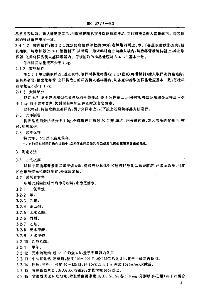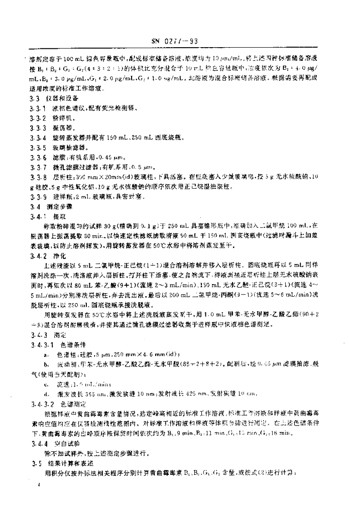 SN 0277-1993 出口粮谷中黄曲霉毒素B1、B2、G1、G2检验方法 液相色谱法