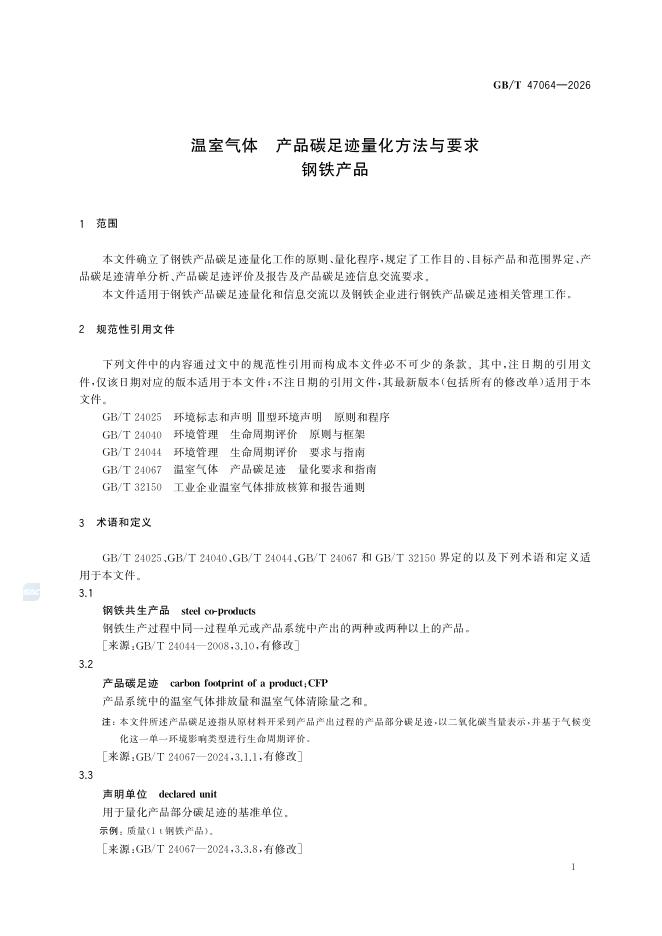 GB/T 47064-2026 温室气体 产品碳足迹量化方法与要求 钢铁产品