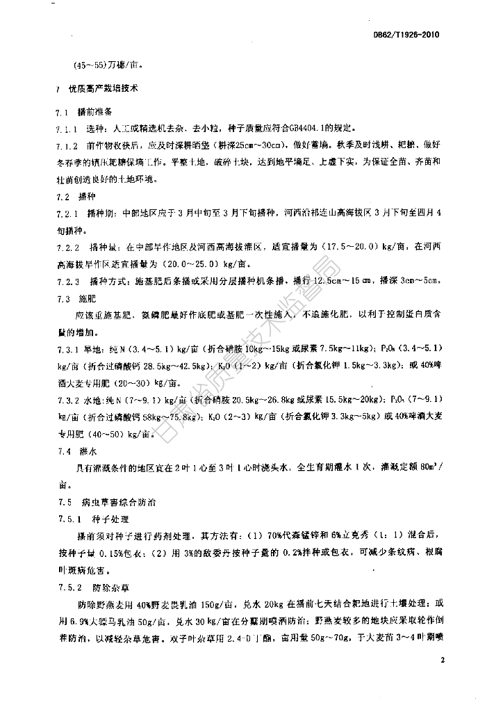DB62/T 1926-2010 甘啤5号优质高产栽培技术规程