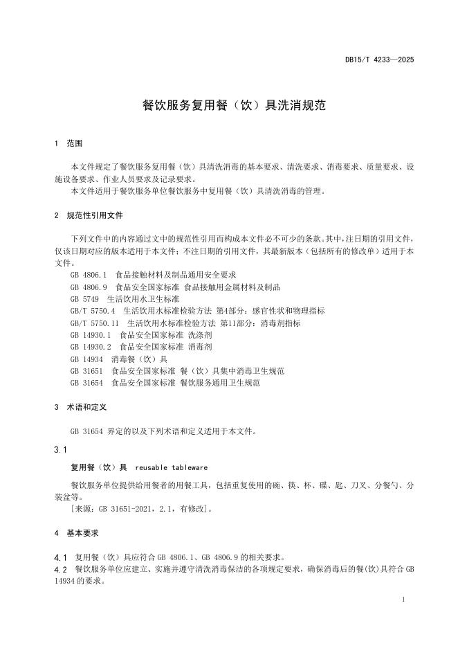 DB15/T 4233-2025 餐饮服务复用餐(饮)具洗消规范