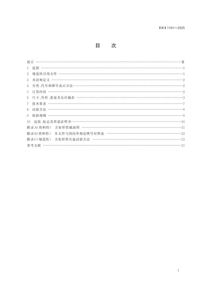 T/CI 1161-2025 客车骨架用方矩形焊接钢管