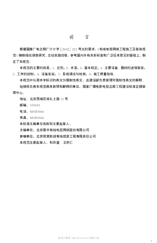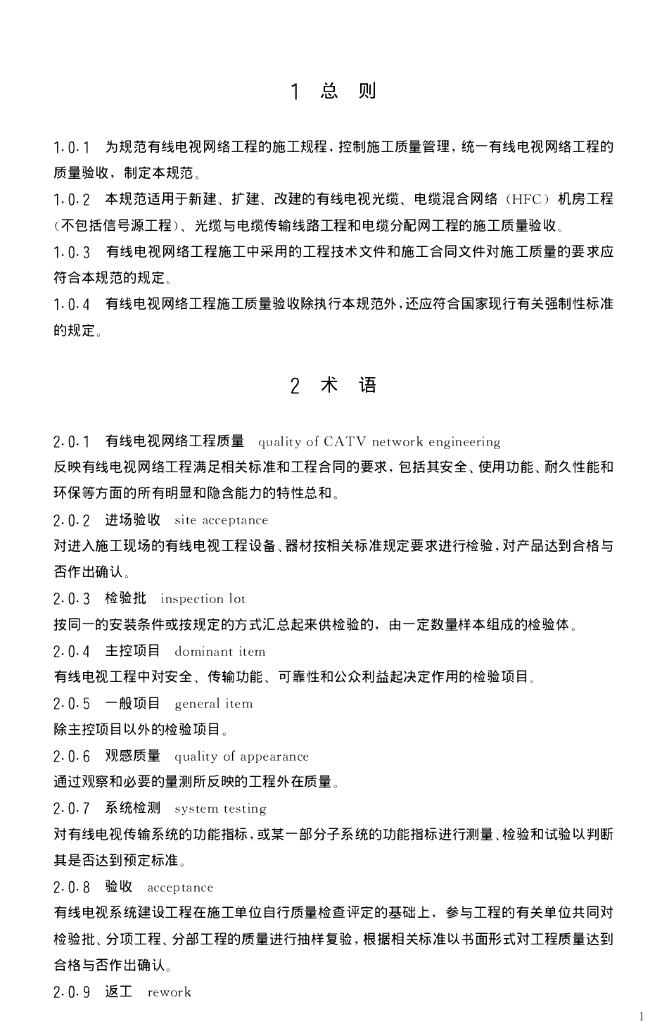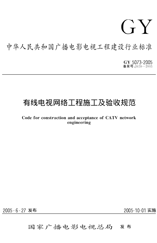 GY 5073-2005 有线电视网络工程施工及验收规范