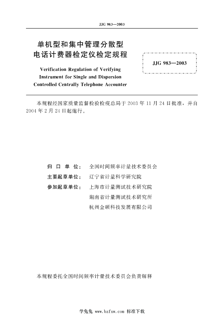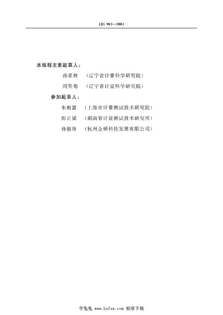孙家林(辽宁省计量科学研究院)、闵笑菊(辽宁省计量科学研究院)、朱根富(上海市计量测试技术研究院)、彭正梁(湖南省计量测试技术研究所)、孙银海(杭州金硕科技发展有限公司)