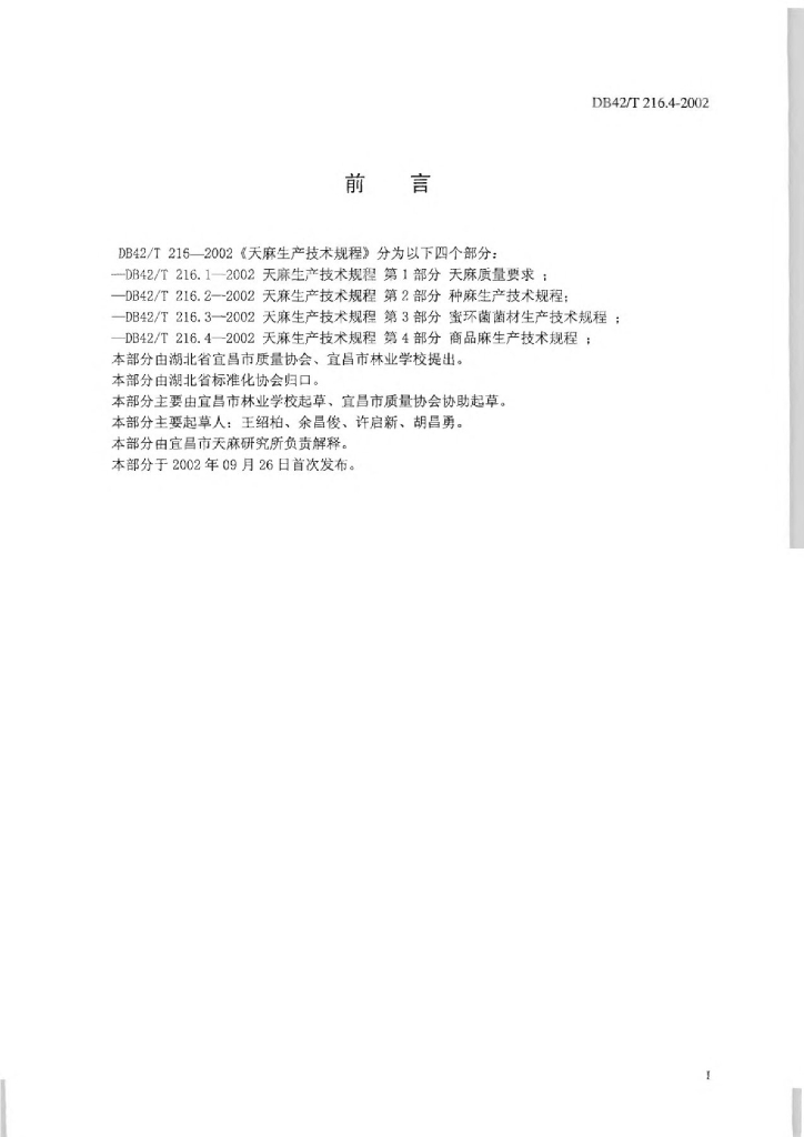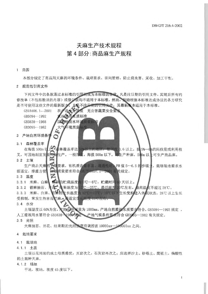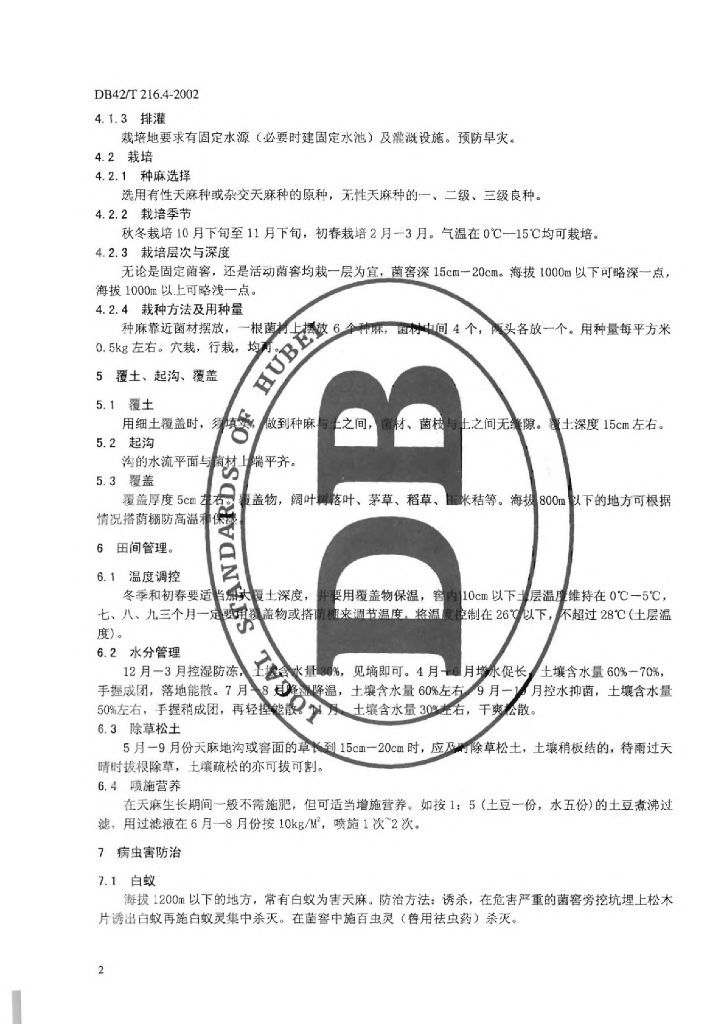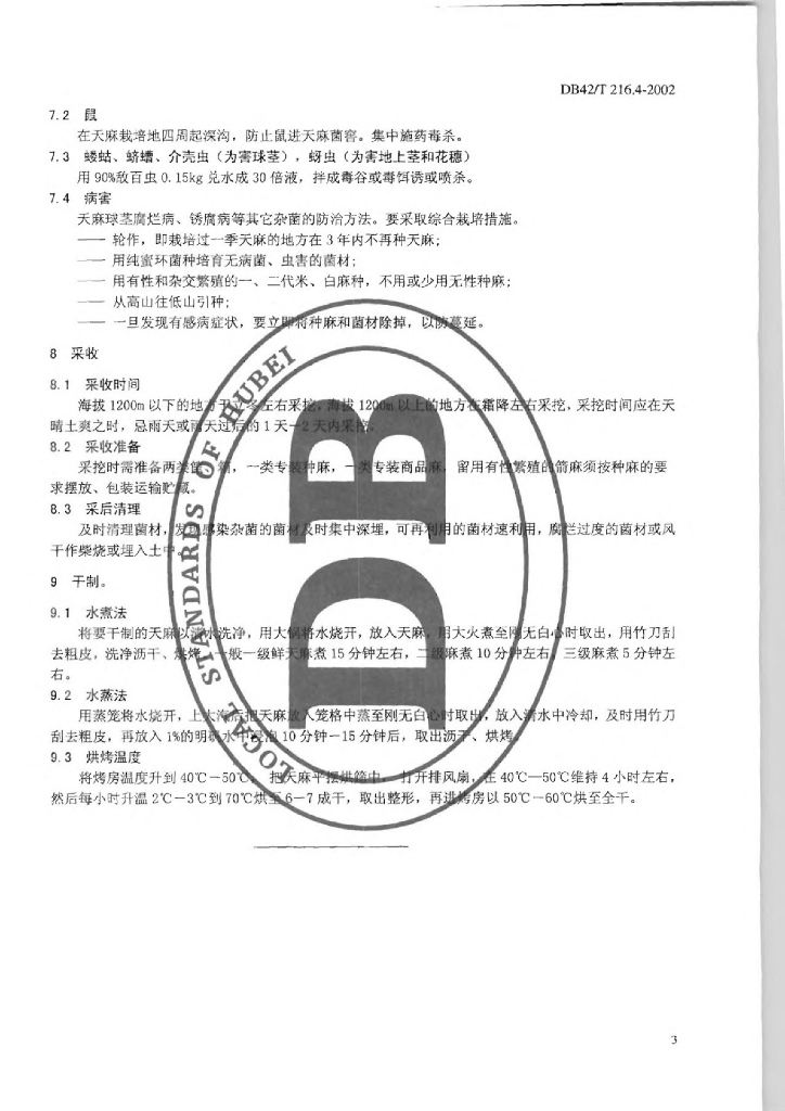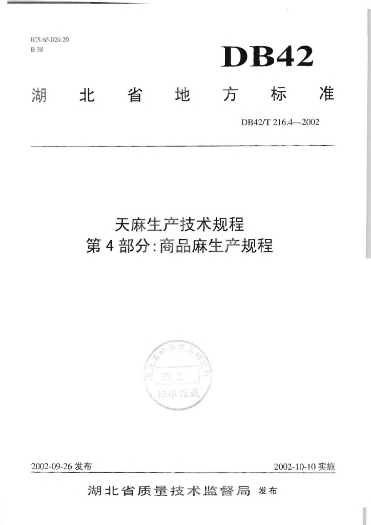 DB42/T 216.4-2002 天麻生产技术规程 第4部分:商品麻生产规程
