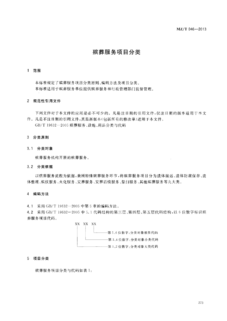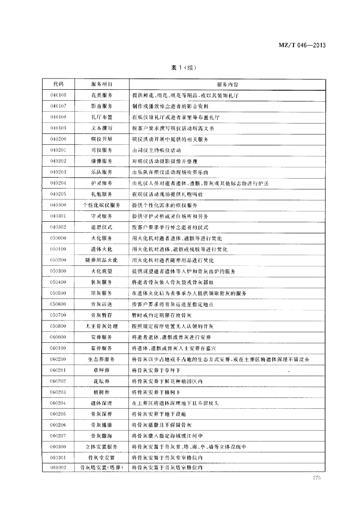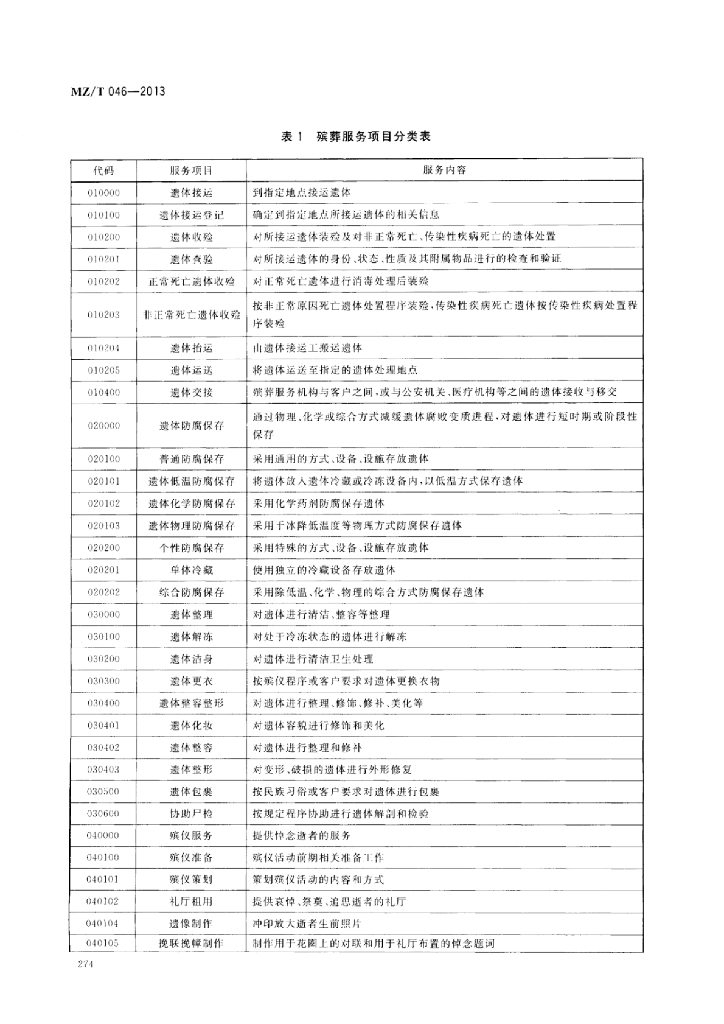 MZ/T 046-2013 殡葬服务项目分类