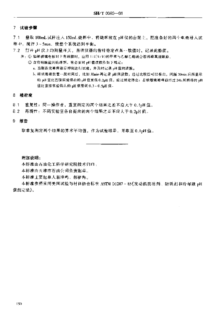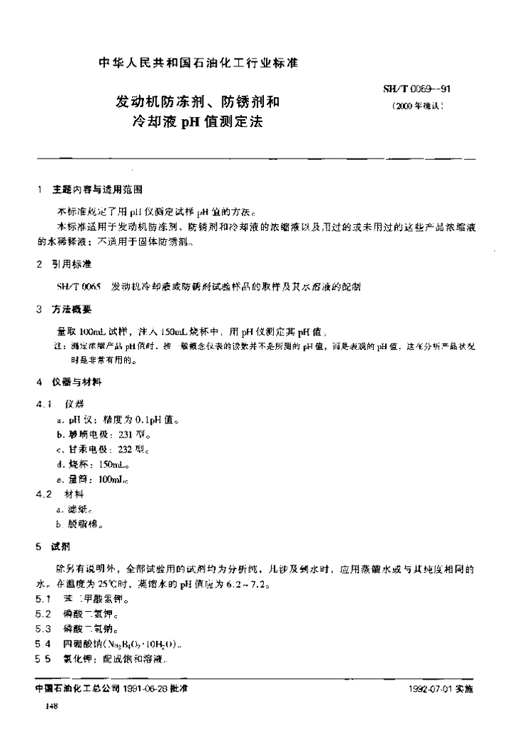 SH/T 0069-1991 发动机防冻剂,防锈剂和冷却液pH值测定法
