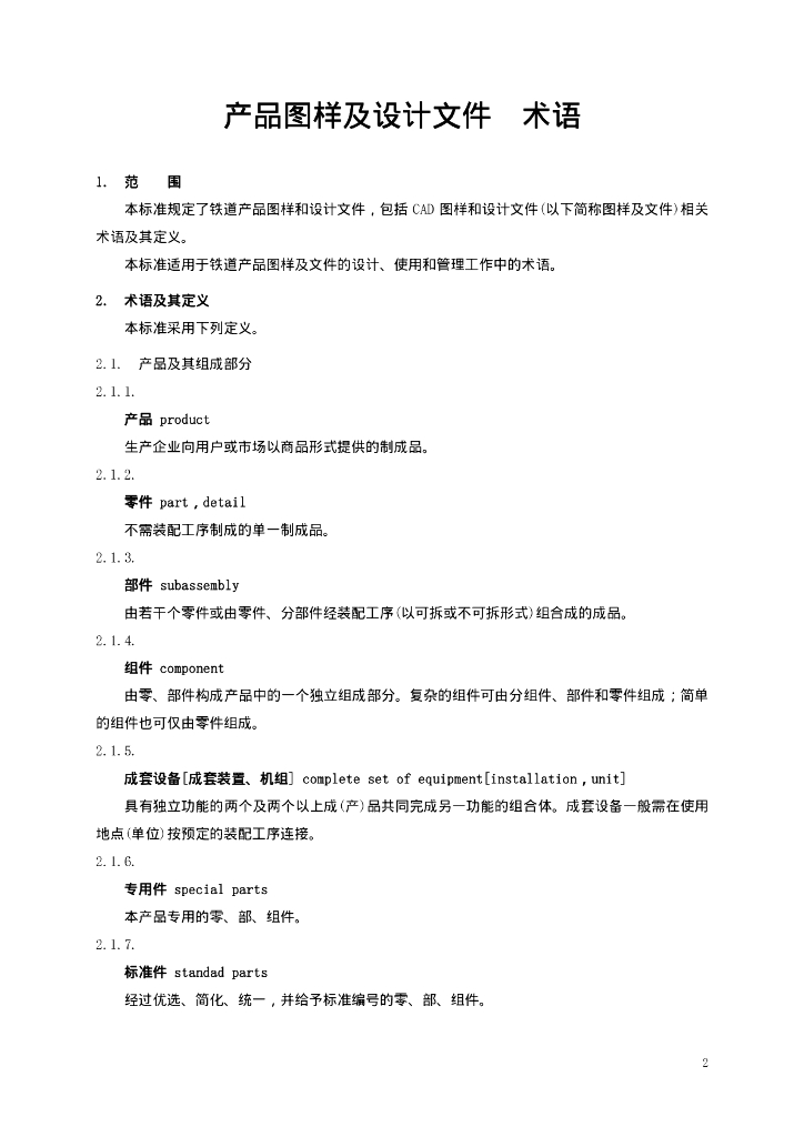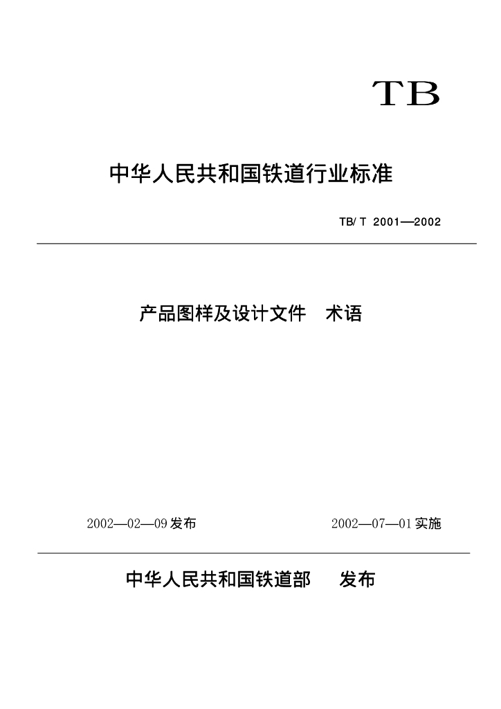 TB/T 2001-2002 产品图样及设计文件 术语