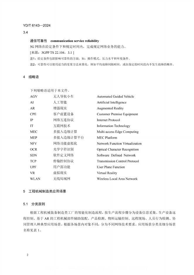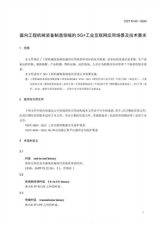 YD/T 6143-2024 面向工程机械装备制造领域的5G+工业互联网应用场景及技术要求