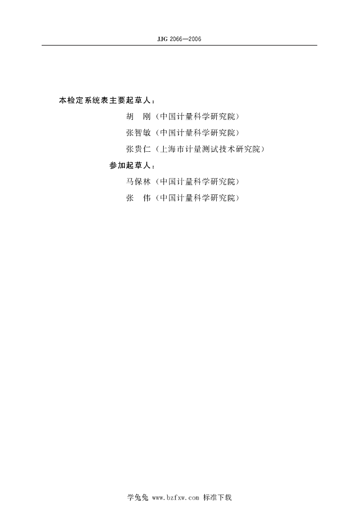 胡刚(中国计量科学研究院)、张智敏(中国计量科学研究院)、张贵仁(上海市计量测试技术研究院)、马保林(中国计量科学研究院)、张伟(中国计量科学研究院)