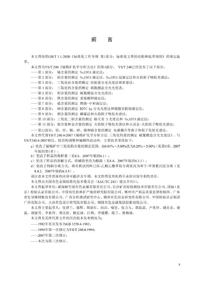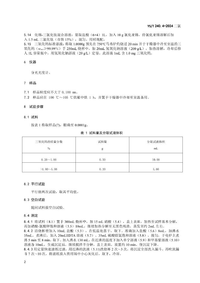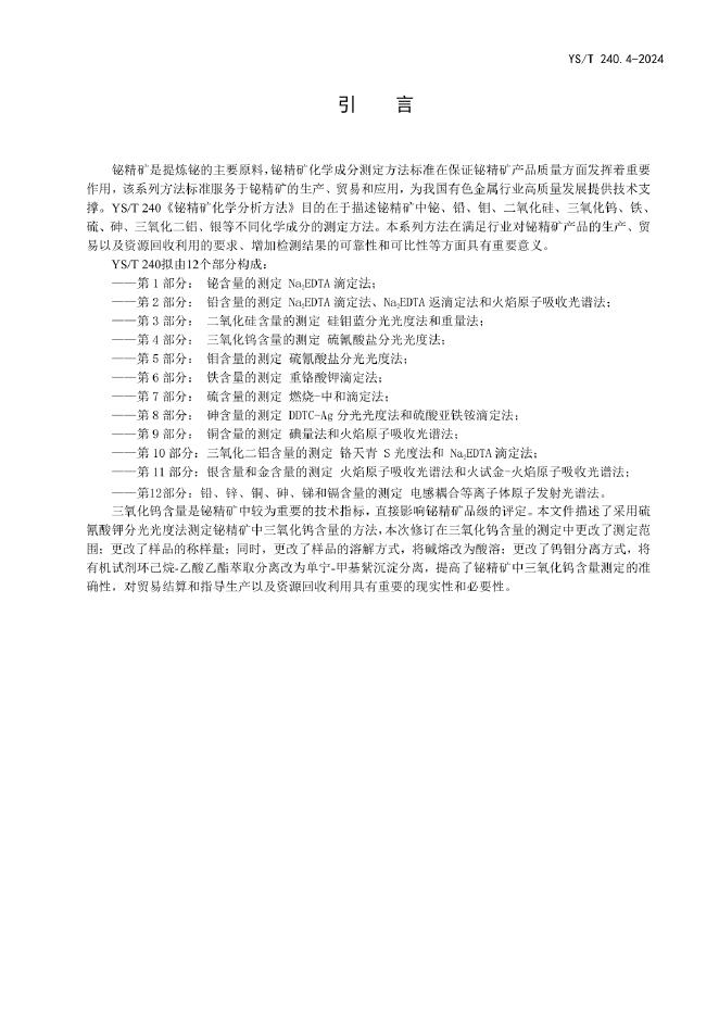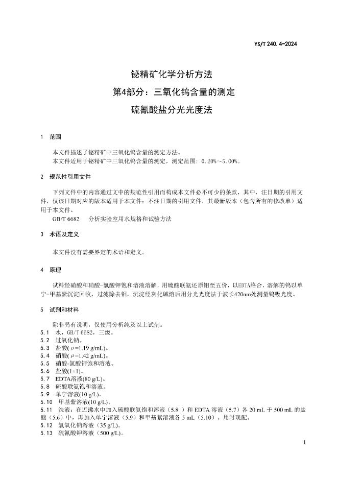 YS/T 240.4-2024 铋精矿化学分析方法 第4部分:三氧化钨含量的测定 硫氰酸盐分光光度法