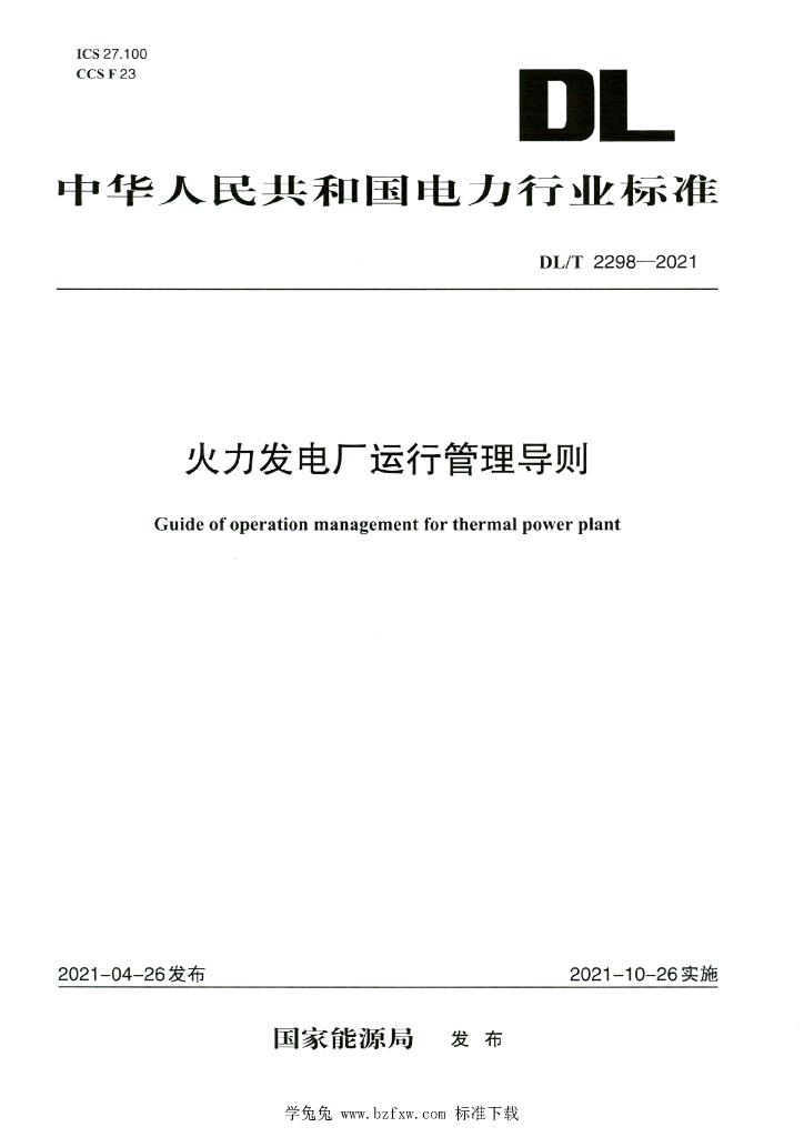 DL/T 2298-2021 火力发电厂运行管理导则