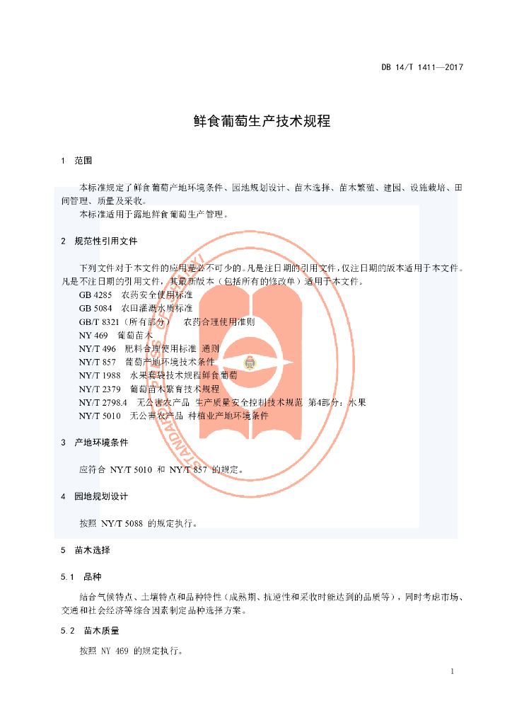 DB14/T 1411-2017 鲜食葡萄生产技术规程