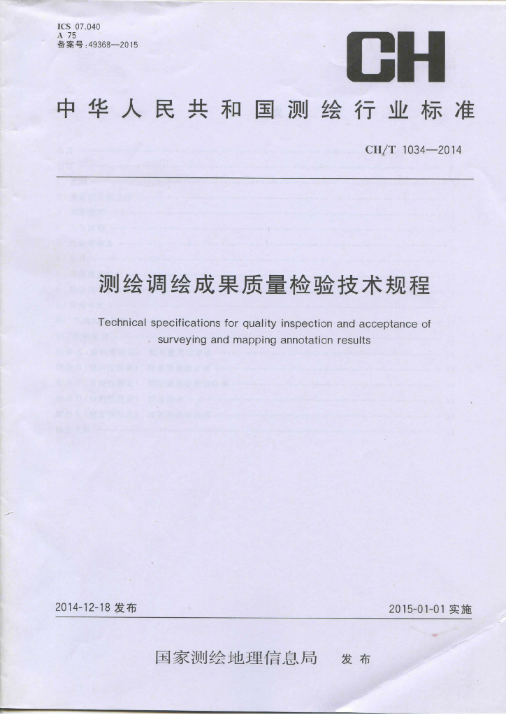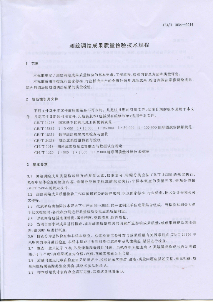 CH/T 1034-2014 测绘调绘成果质量检验技术规程