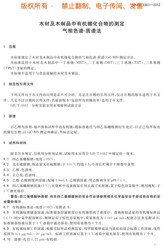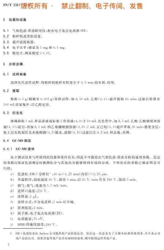 SN/T 3361-2012 木材及木制品中有机锡化合物的测定 气相色谱-质谱法