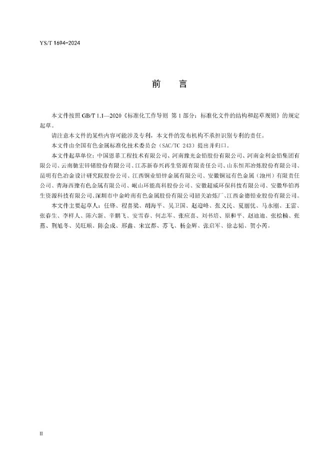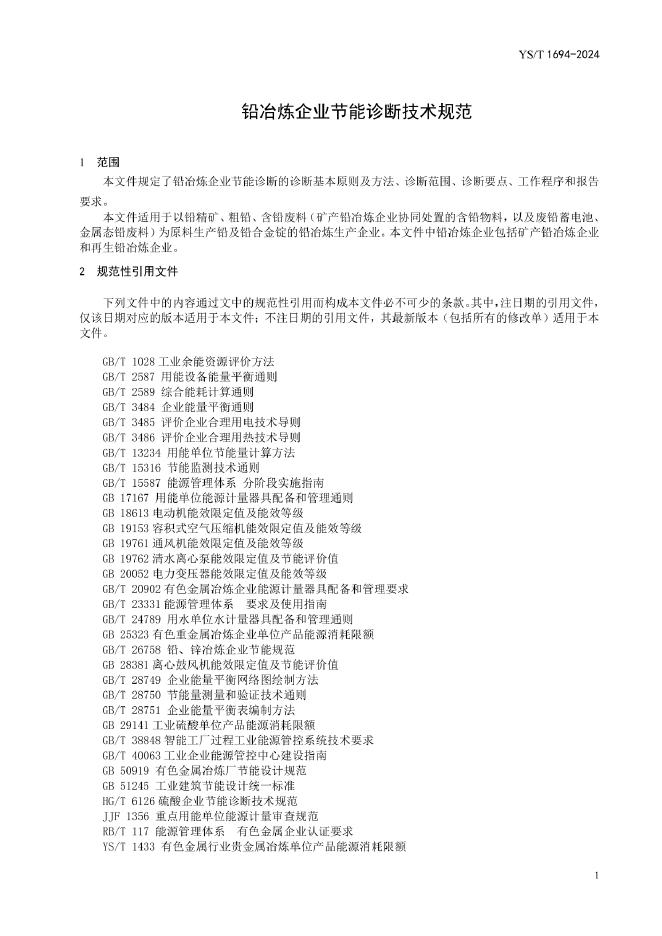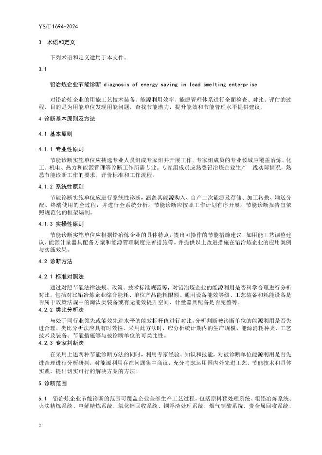 YS/T 1694-2024 铅冶炼企业节能诊断技术规范