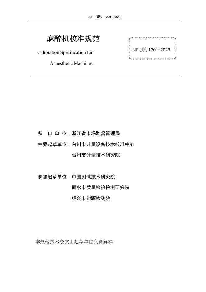 JJF(浙)1201-2023 麻醉机校准规范