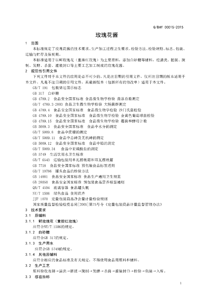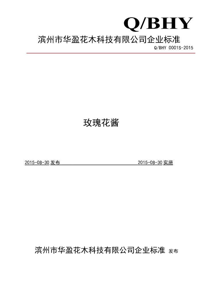 Q/BHY 0001S-2015 滨州市华盈花木科技有限公司 玫瑰花酱