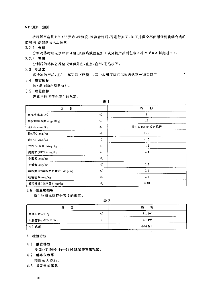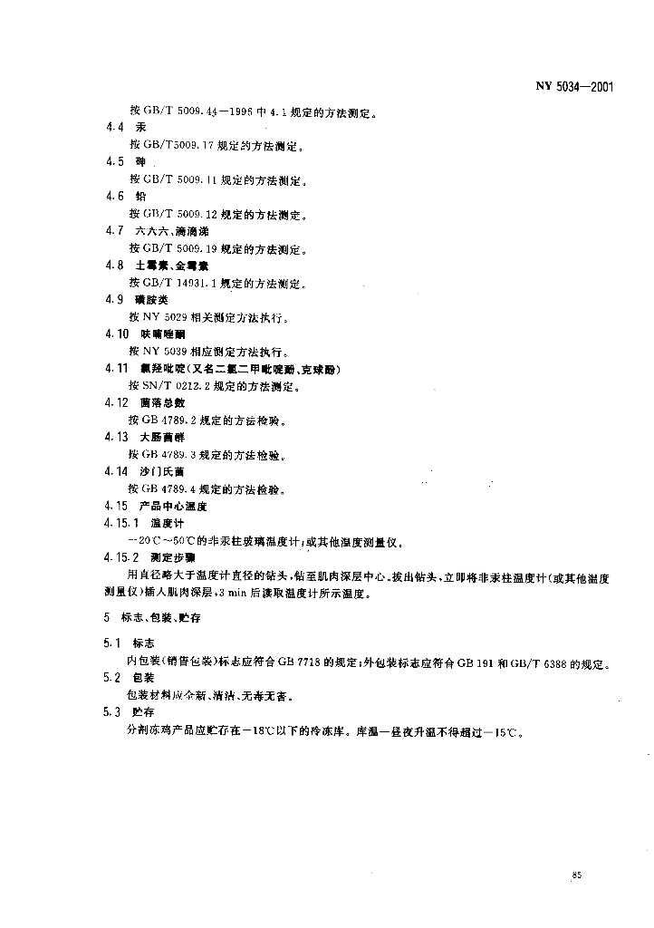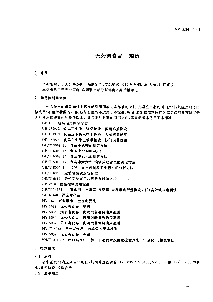 NY 5034-2001 无公害食品 鸡肉