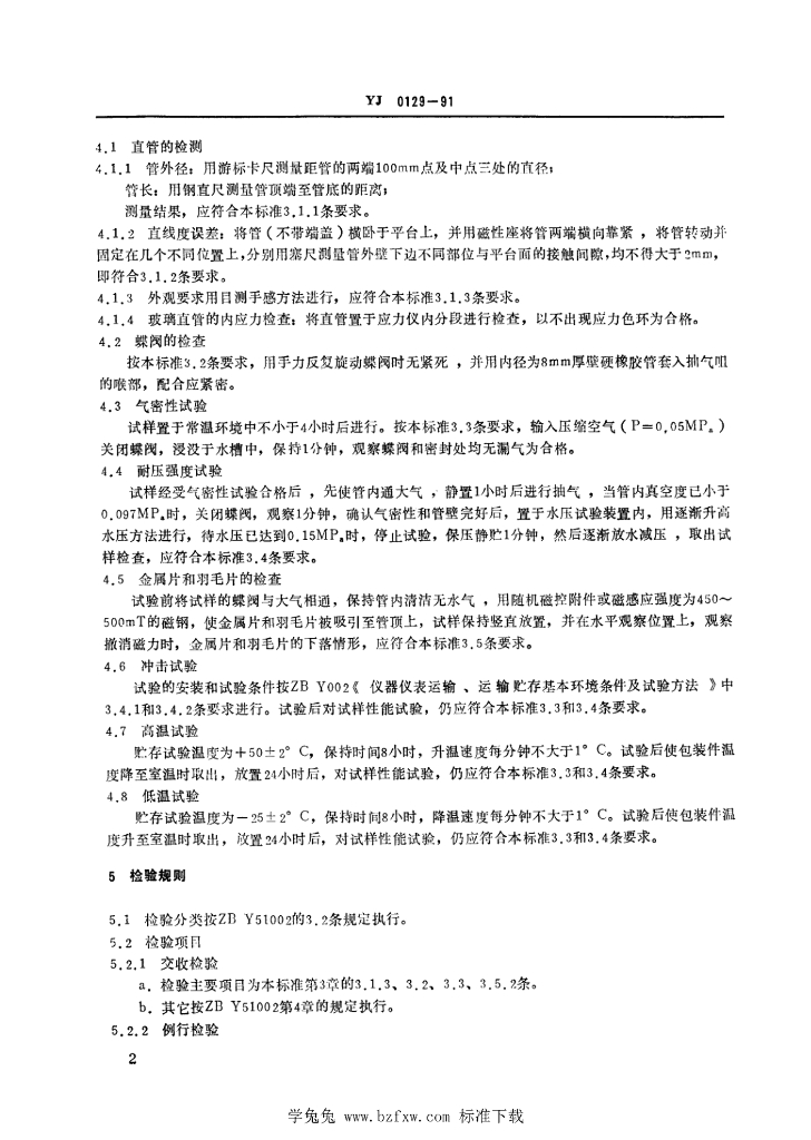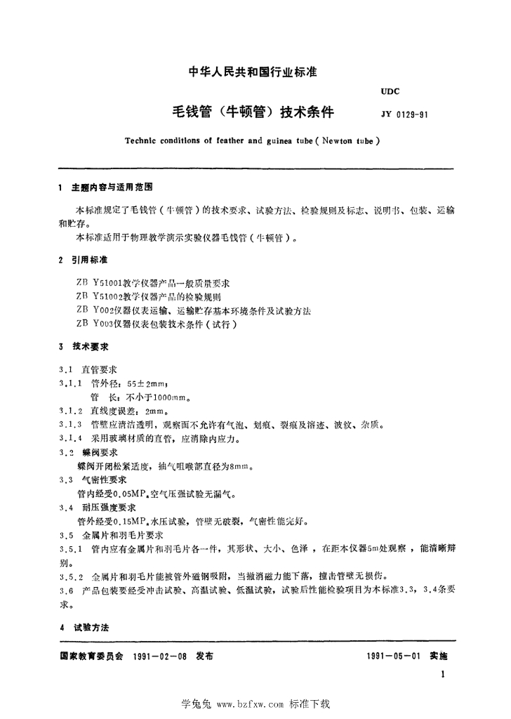 JY 0129-1991 毛钱管(牛顿管)技术条件