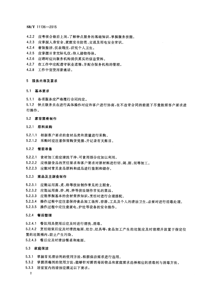SB/T 11136-2015 家政服务钟点服务质量规范