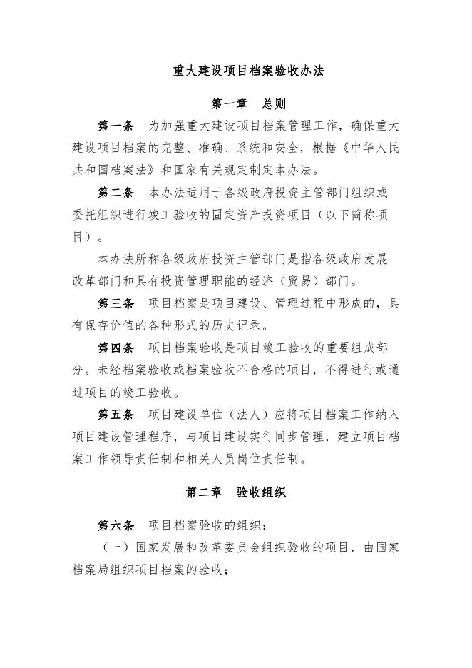 国家档案局&国家发改委:重大建设项目档案验收办法