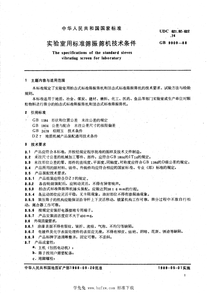 DZ/T 0118-1994 实验室用标准筛振荡机技术条件