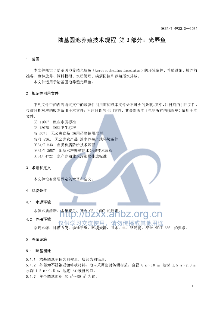 DB34/T 4933.3-2024 陆基圆池养殖技术规程 第3部分:光唇鱼