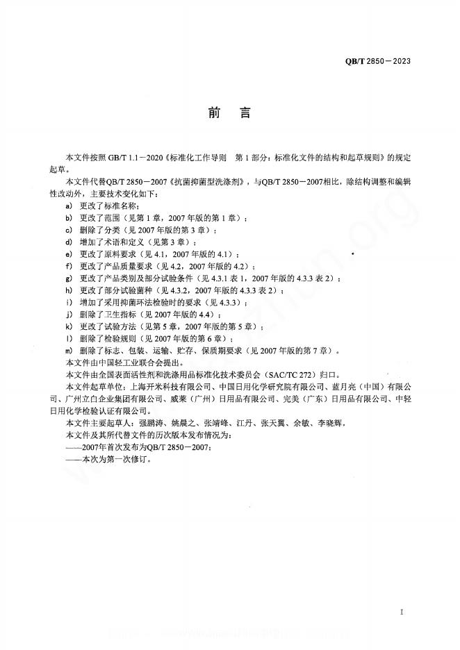 上海开米科技有限公司、中国日用化学研究院有限公司、蓝月亮(中国)有限公司、广州立白企业集团有限公司、威莱(广州)日用品有限公司、完美(广东)日用品有限公司、中轻日用化学检验认证有限公司