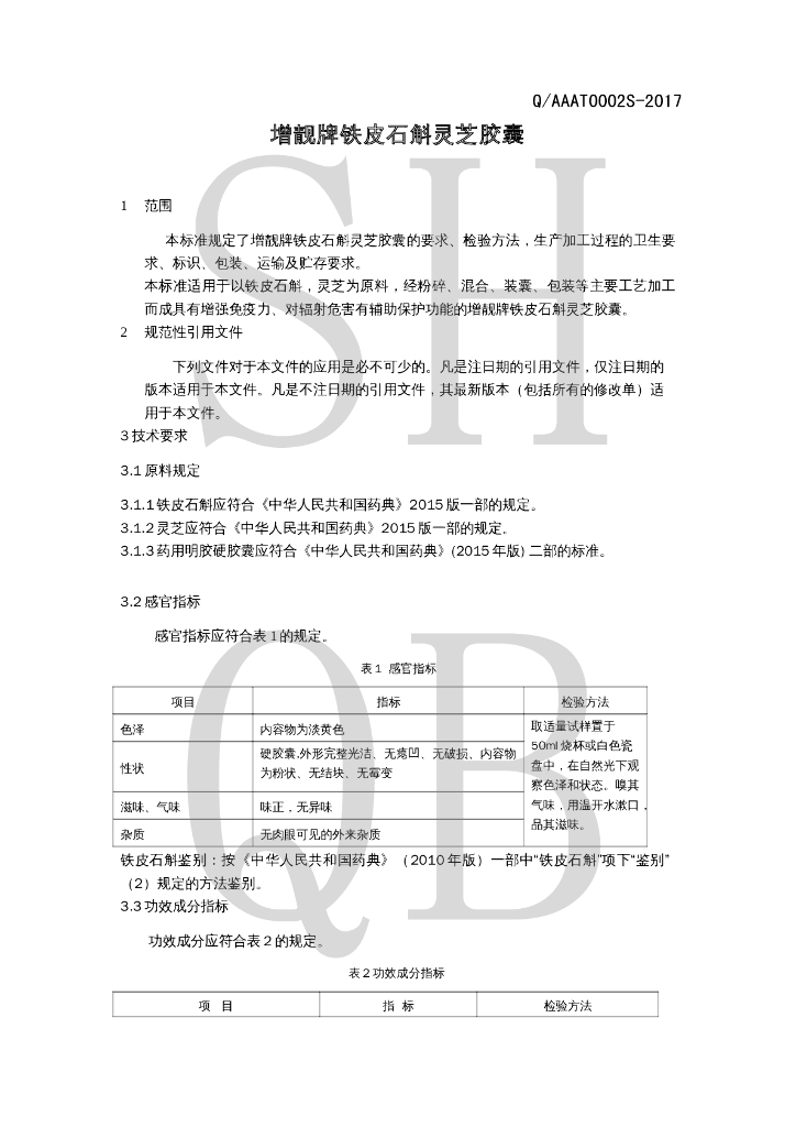 Q/AAAT 0002S-2017 增靓牌铁皮石斛灵芝胶囊