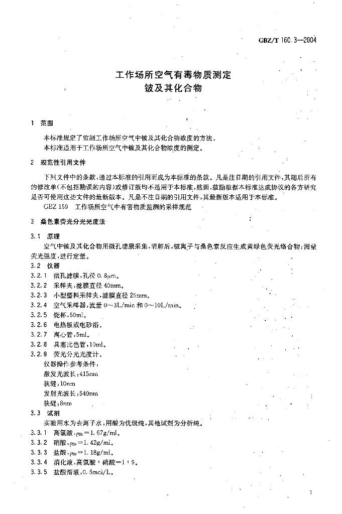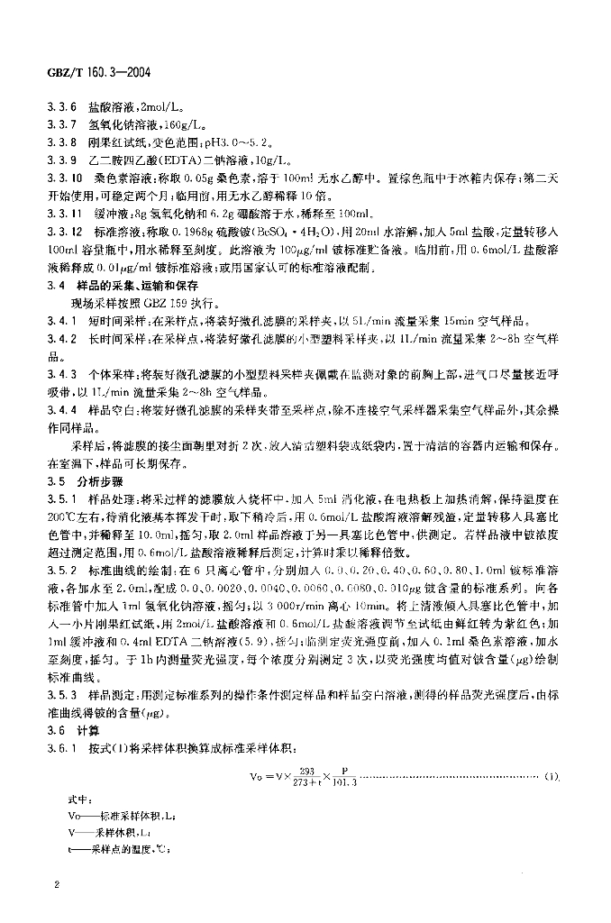 GBZ/T 160.3-2004 工作场所空气有毒物质测定 铍及其化合物