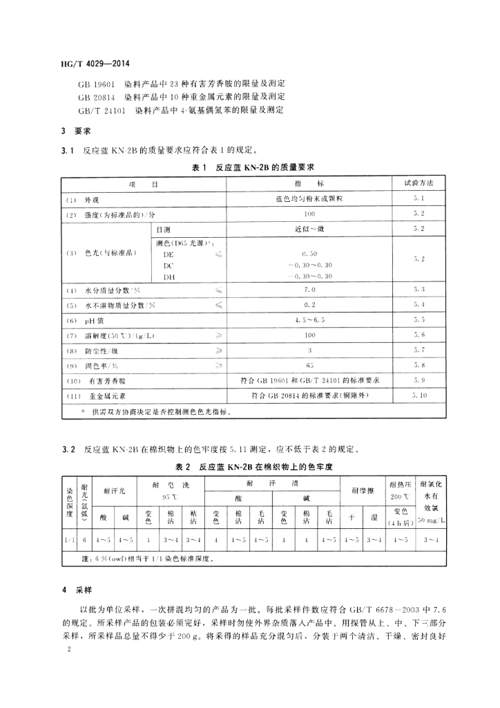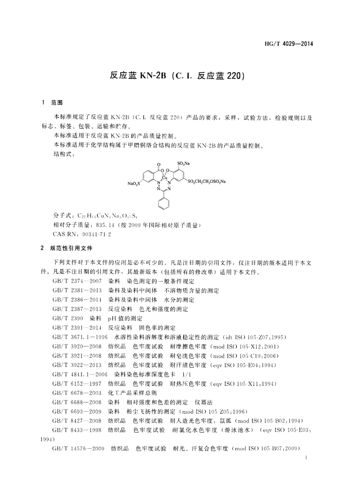 HG/T 4029-2014 反应蓝KN-2B(C.I.反应蓝220)