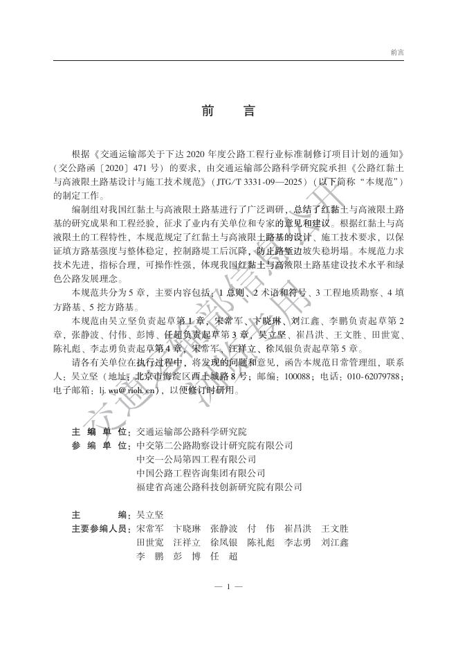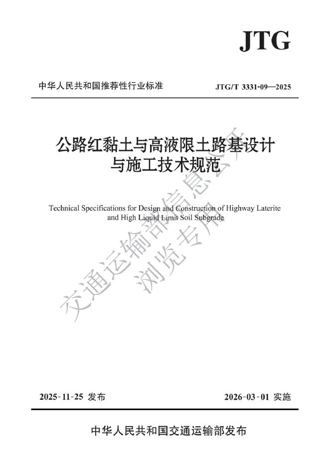 JTG/T 3331-09-2025 公路红黏土与高液限土路基设计与施工技术规范