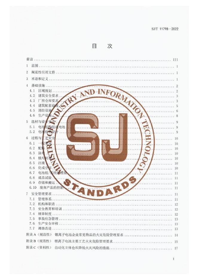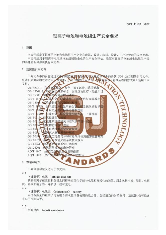 SJ/T 11798-022 锂离子电池和电池组生产安全要求