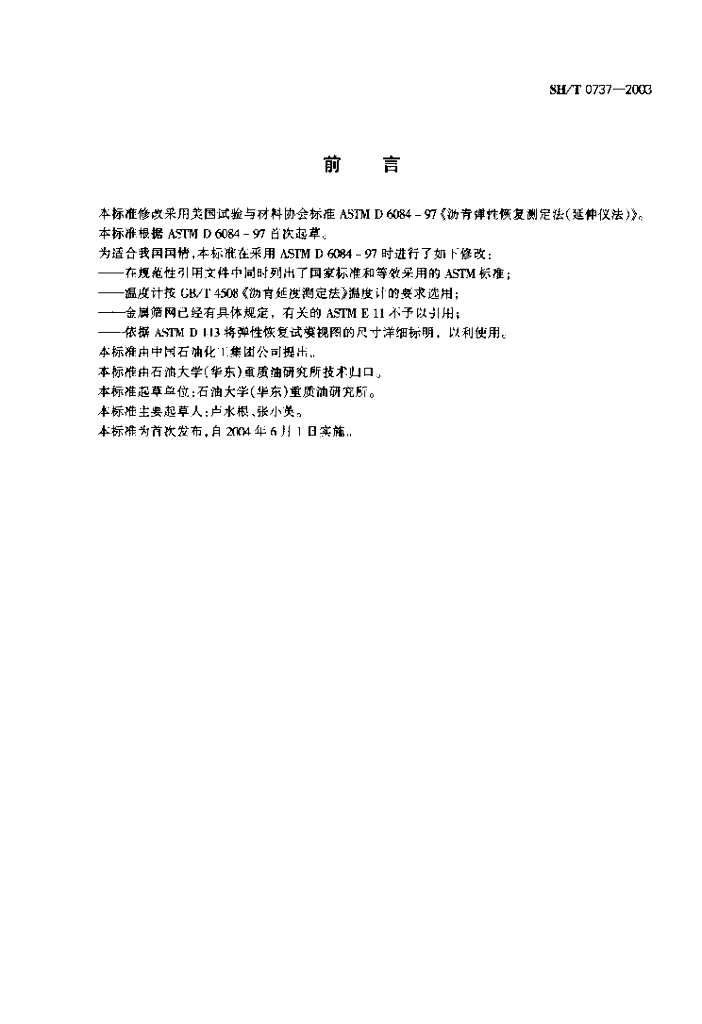 SH/T 0737-2003 沥青弹性恢复测定法(延度仪法)
