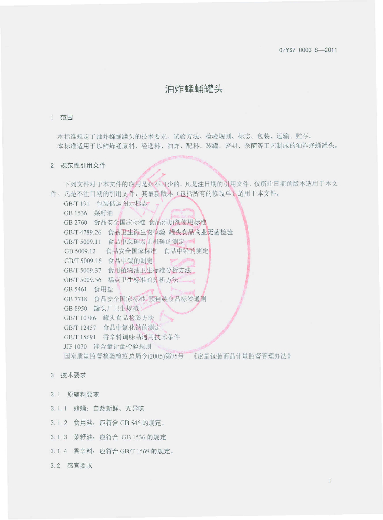 Q/YSZ 0003S-2011 油炸蜂蛹罐头